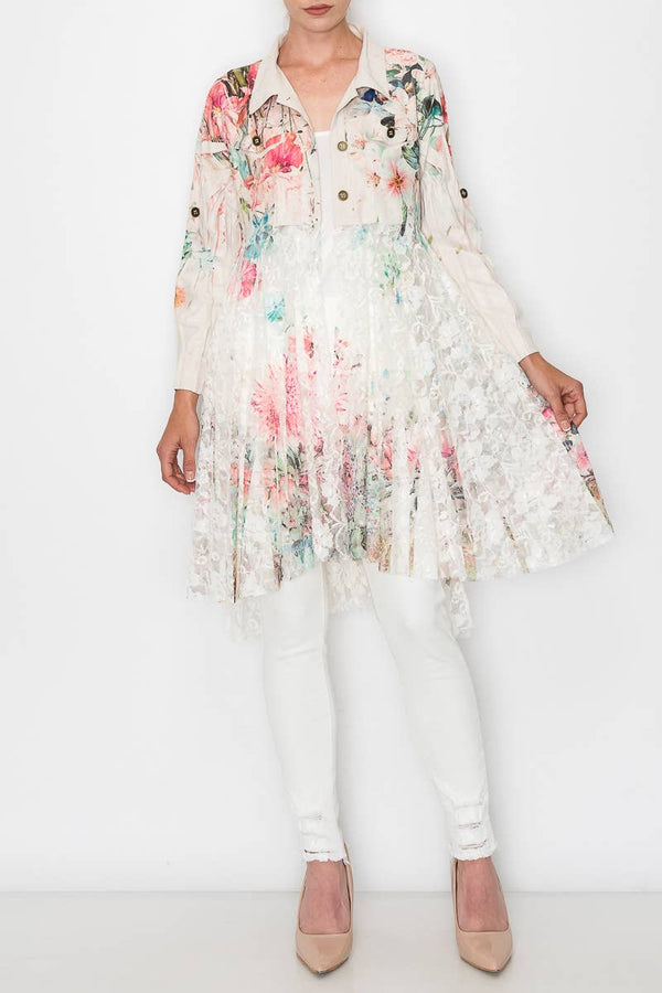 Vintage Washed Lace Crochet Long Open Cardigan UWT394A