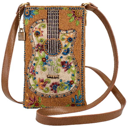 Garden Groove Ivory Guitar with Flowers Beaded Crossbody