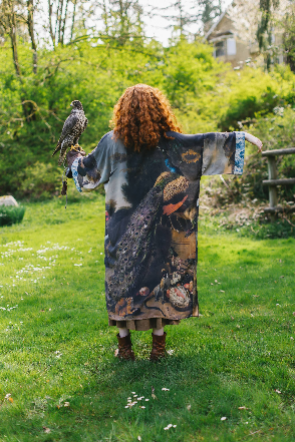 Wild Beauty Bamboo Kimono Duster Robe with Peacock Print